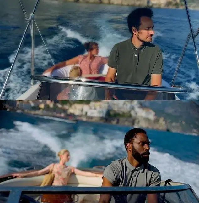 На снимката: Пресъздадена е сцена от най-новия филм на Кристофър Нолан - "Tenet". Двамата влизат в ролите на Джон Дейвид Уошингтън и Елизабет Дебики. Кадърът е направен във Венеция.