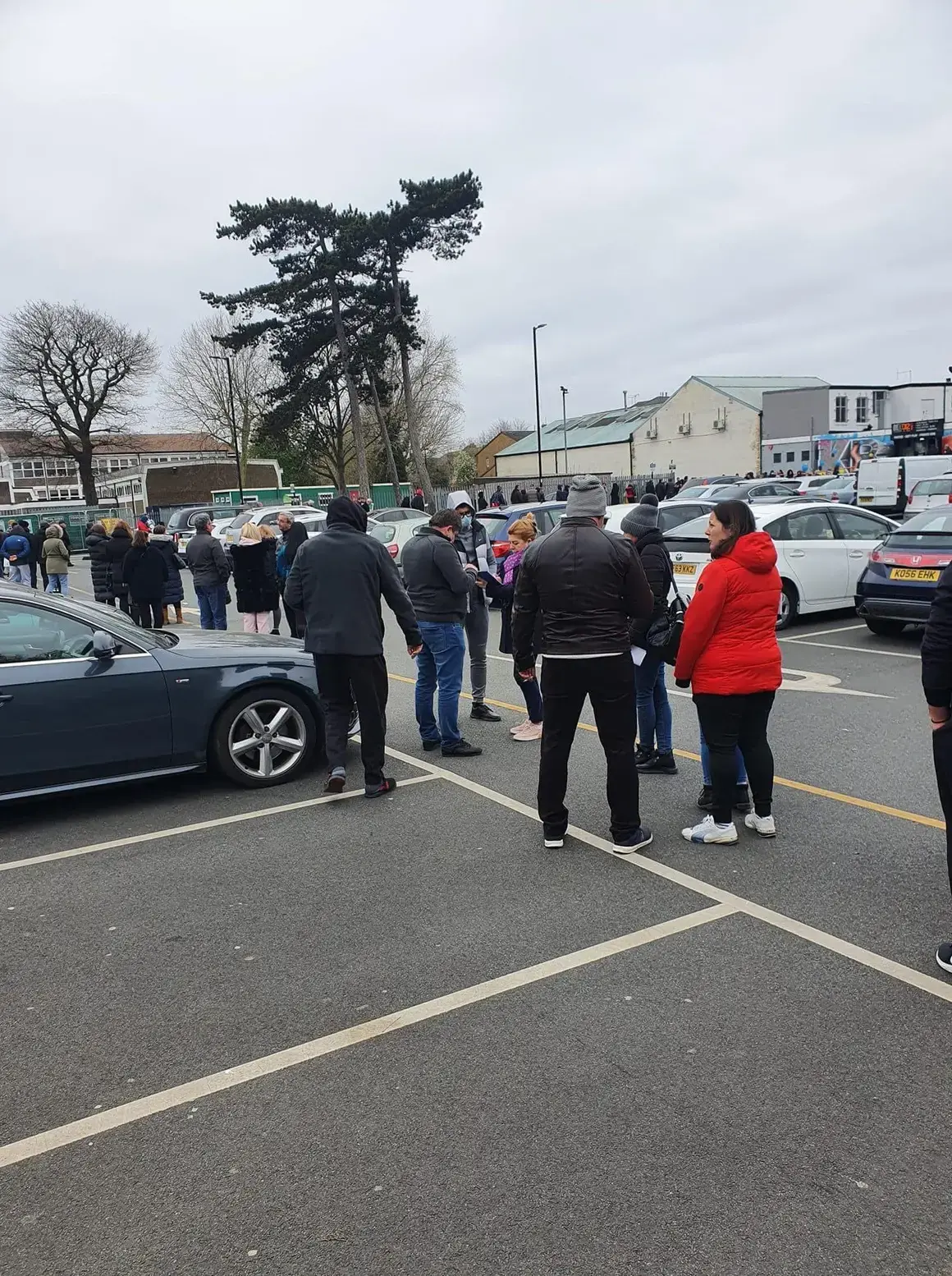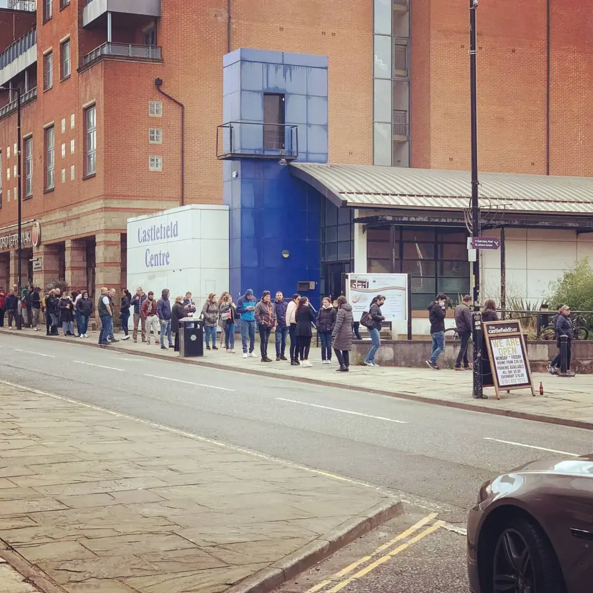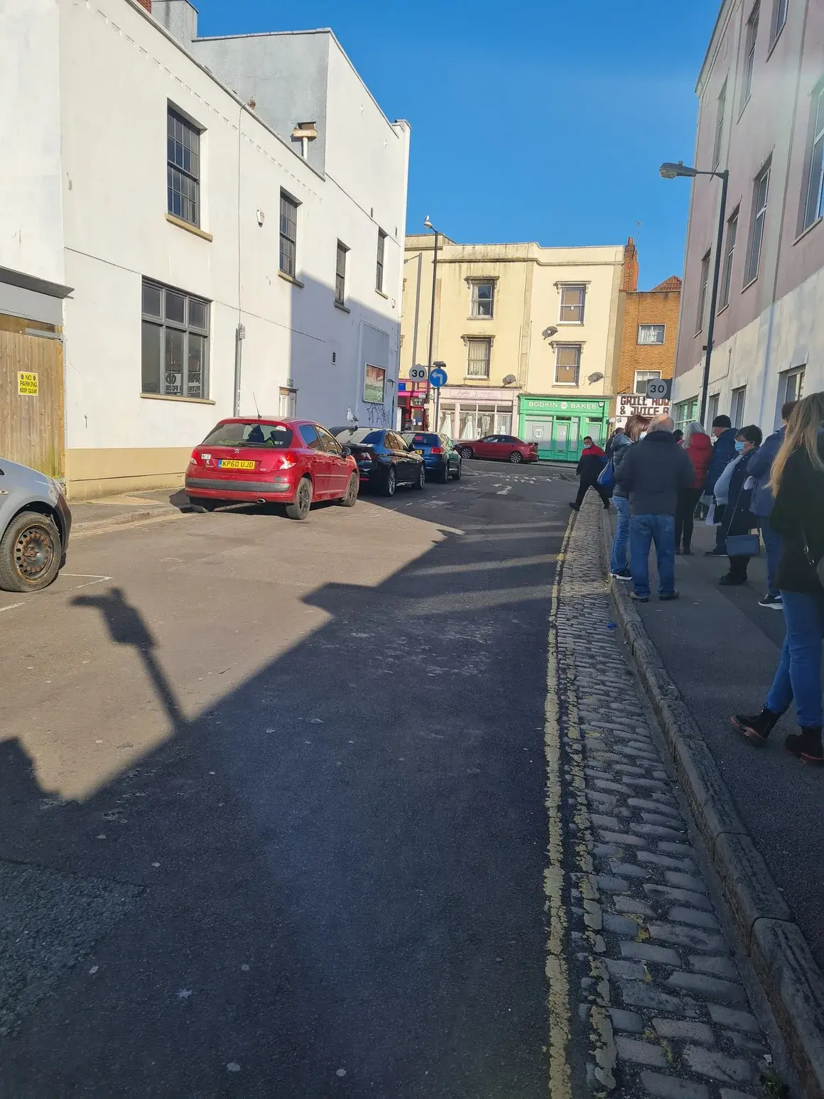 Юлия Кошаревска от британския град Бристол споделя в Twitter, че опашката на "Олд Маркет" е дълга, но "духът е приповдигнат".