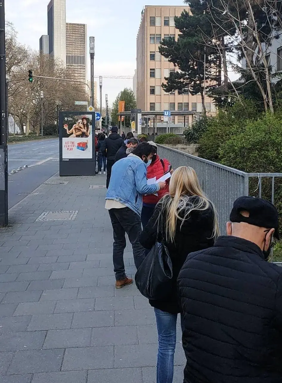 В Германия са разкрити най-много секции - 69. Такава има и във Франкфурт, където дълга опашка се е струпала още в 9 ч. сутринта.