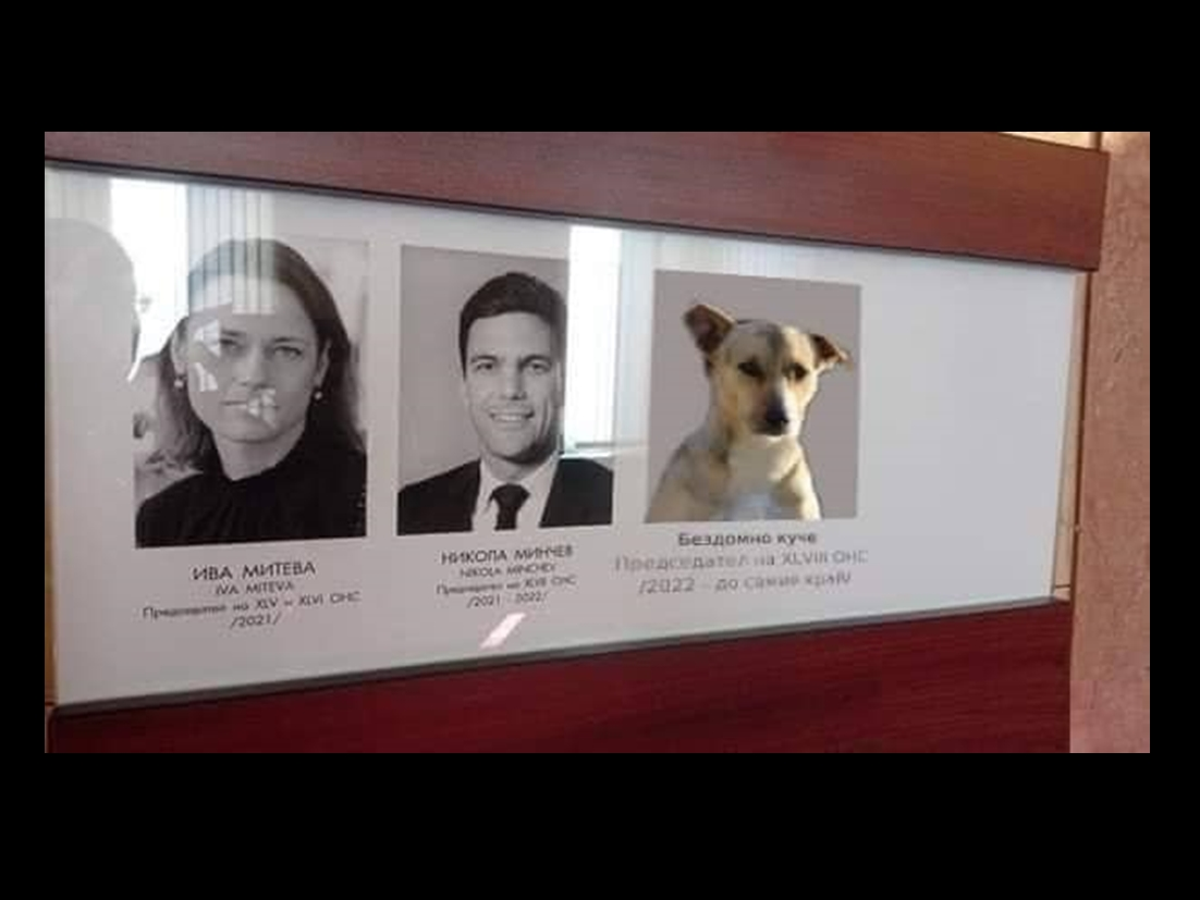 На фона на цялата тази политическа и конституционална суматоха се роди звезда. Става дума за бездомното куче, което се появи пред сградата на Народното събрание и се превърна в участник в тържественото откриване на новия парламент - преди да стане ясно, че то ще е и мъчително.