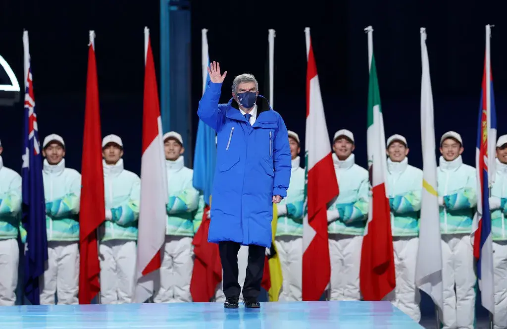 Президентът на Международния олимпийски комитет Томас Бах помаха на зрителите от сцената на Националния стадион в Пекин.