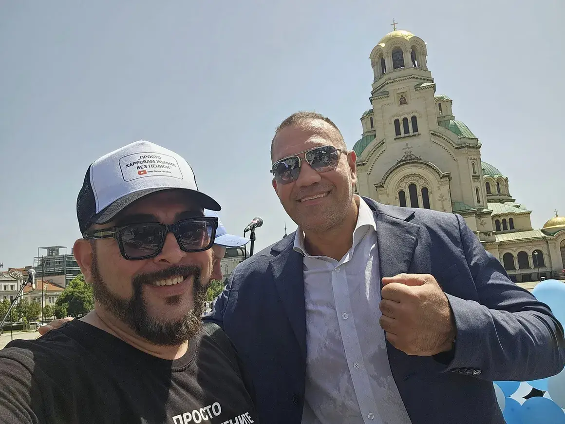 Заедно с него позира и лидерът на партия МЕЧ Радостин Василев. Формацията не успя да влезе в 50-ото Народно събрание.