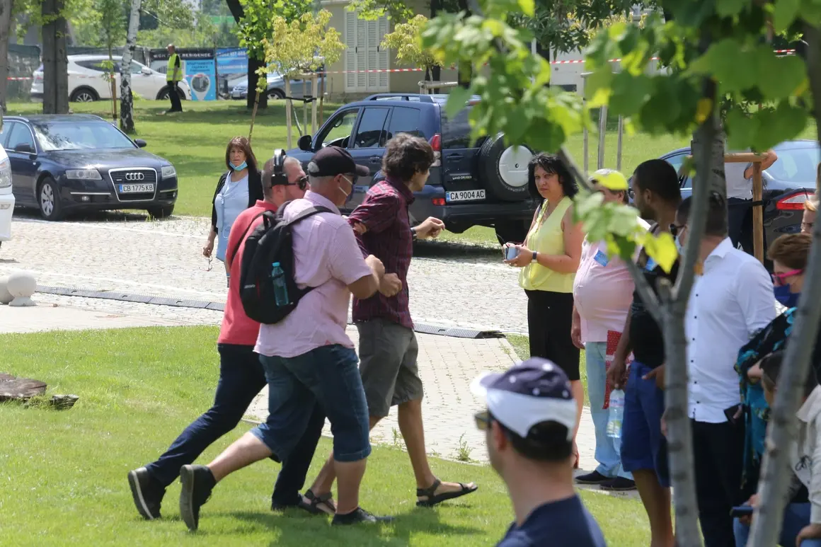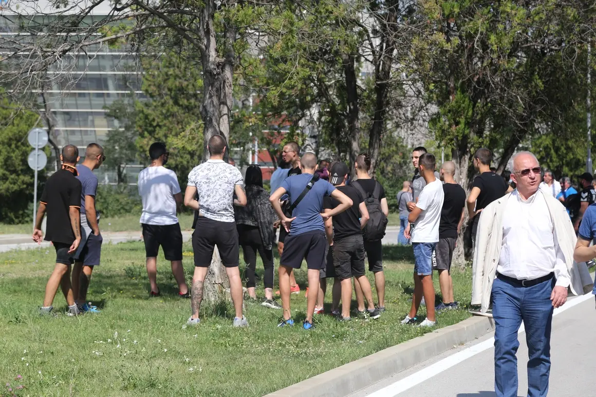 Събирането на агитките в "София Тех Парк" - тренирани момчета с бръснати глави и татуировки избягваха срещи с журналисти и криеха лицата си.