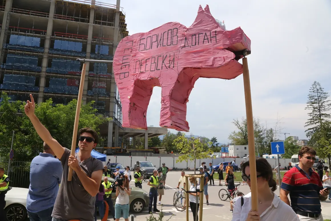 Розовото прасе, познато от протестите, се появи и тук.