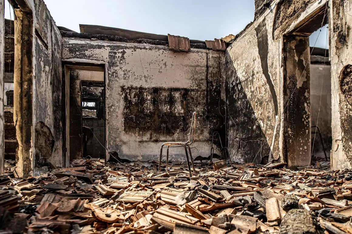 Останките на къща след пожара в Алваязери в централна Португалия.