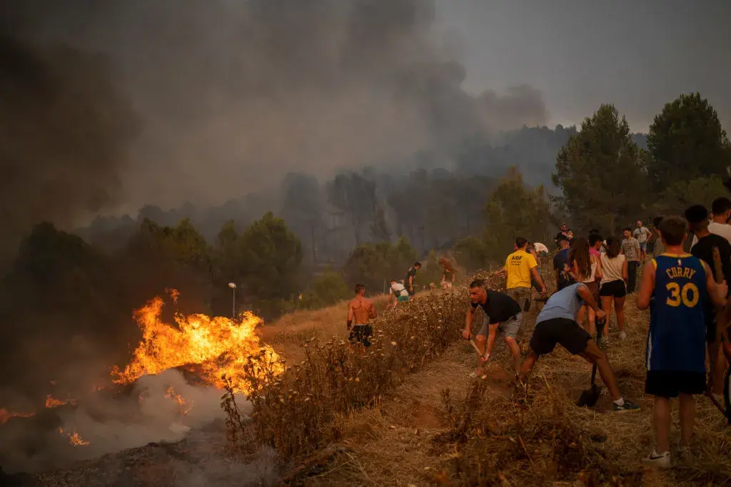 Жители на Сан Фруитос де Бажес в Каталуния се включват в усилията за справяне с пожарите.