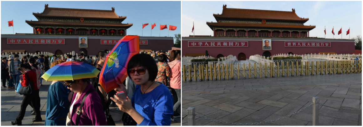 Април 2013 / Март 2020 - Площад Тиенанмън в китайската столица Пекин е безлюден.