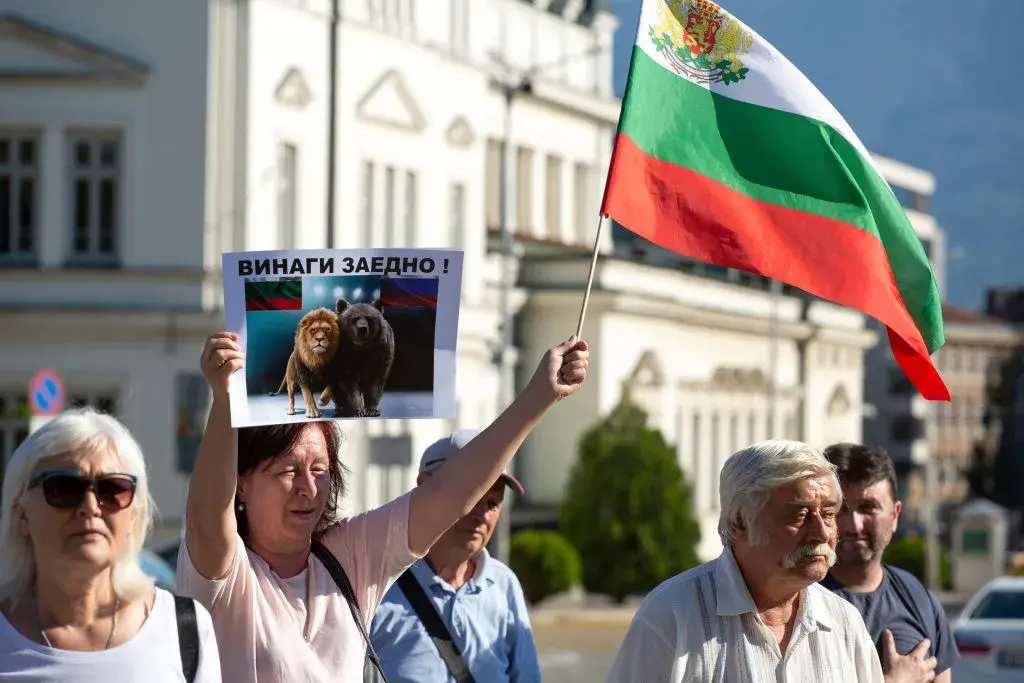 София, България. Граждани излязоха на протест пред храм-паметник "Св. Александър Невски", за да изразят несъгласието си срещу предприетото от правителството изгонване на 70 руски дипломати от посолствата в България.
