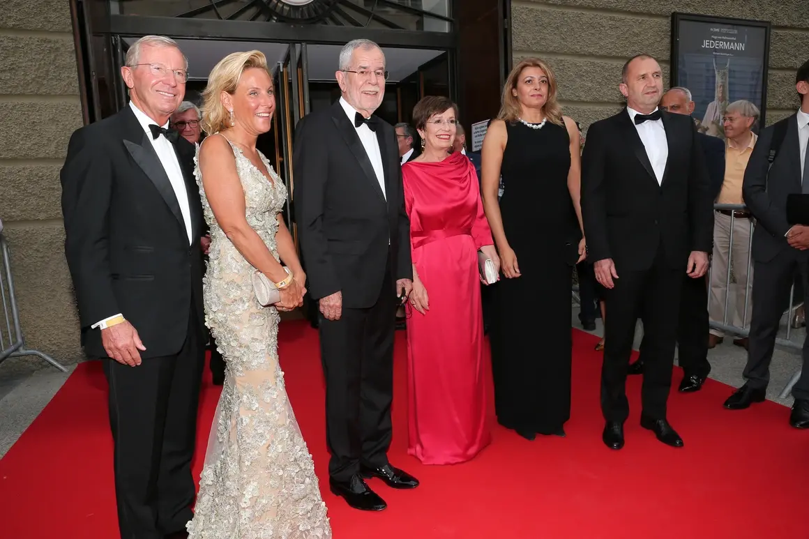 Австрийският президент Ван дер Белен бе със сходно облекло като това на българския си колега. Съпругата му Дорис Шмидбауер показа изцяло червената си рокля.