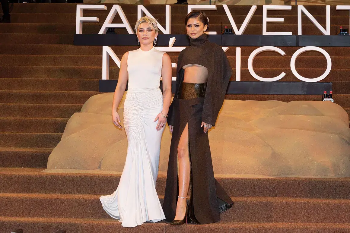В Мексико Сити Флоранс Пю и Зендея позират с бяла рокля на Standing Ground и с тъмен изрязан модел на Bottega Veneta.