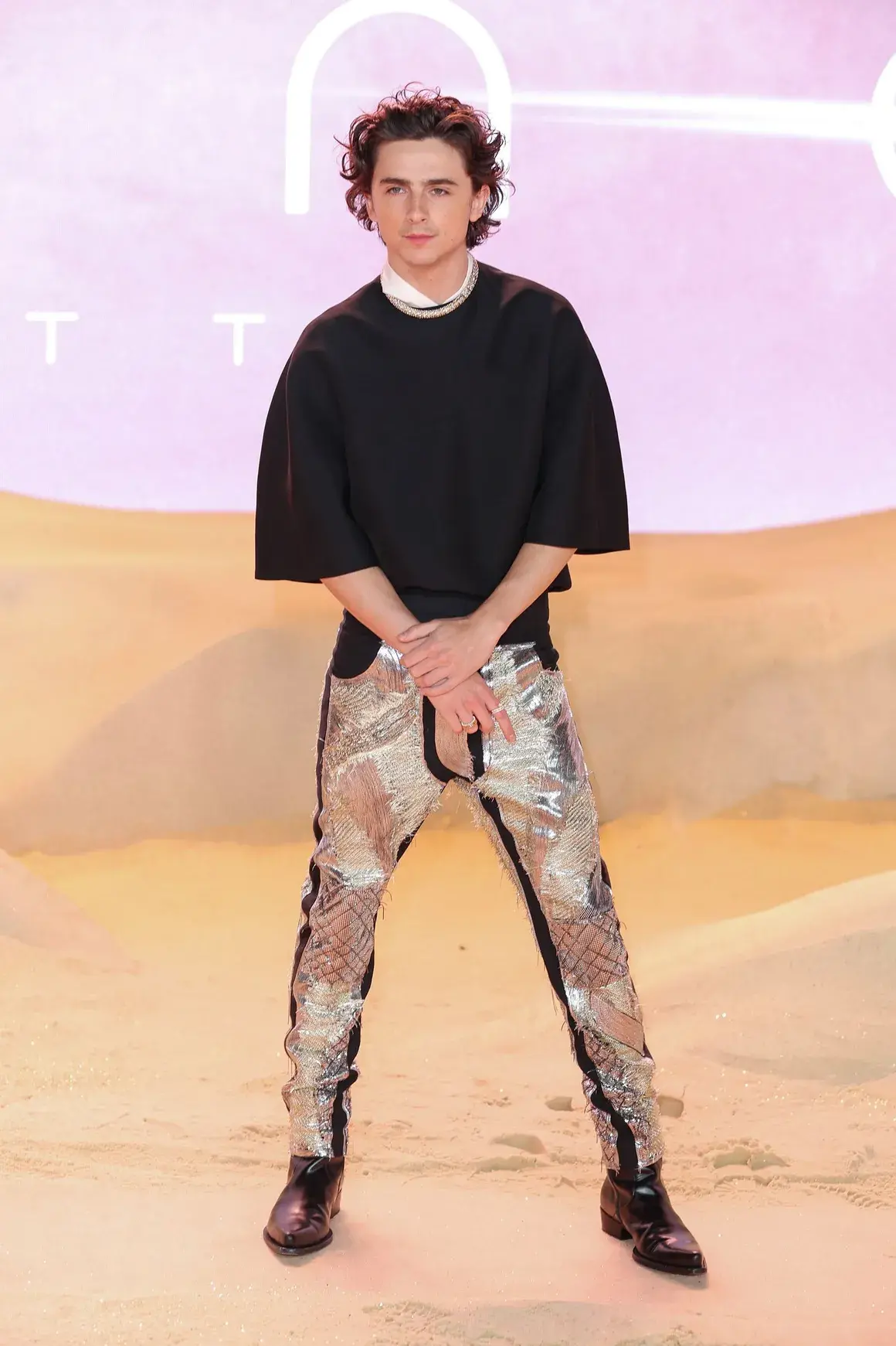 Тимоти Шаламе, който е в ролята на Пол Атреидски, е с дрехи на френския дизайнер Хайдер Акърман (Haider Ackermann).