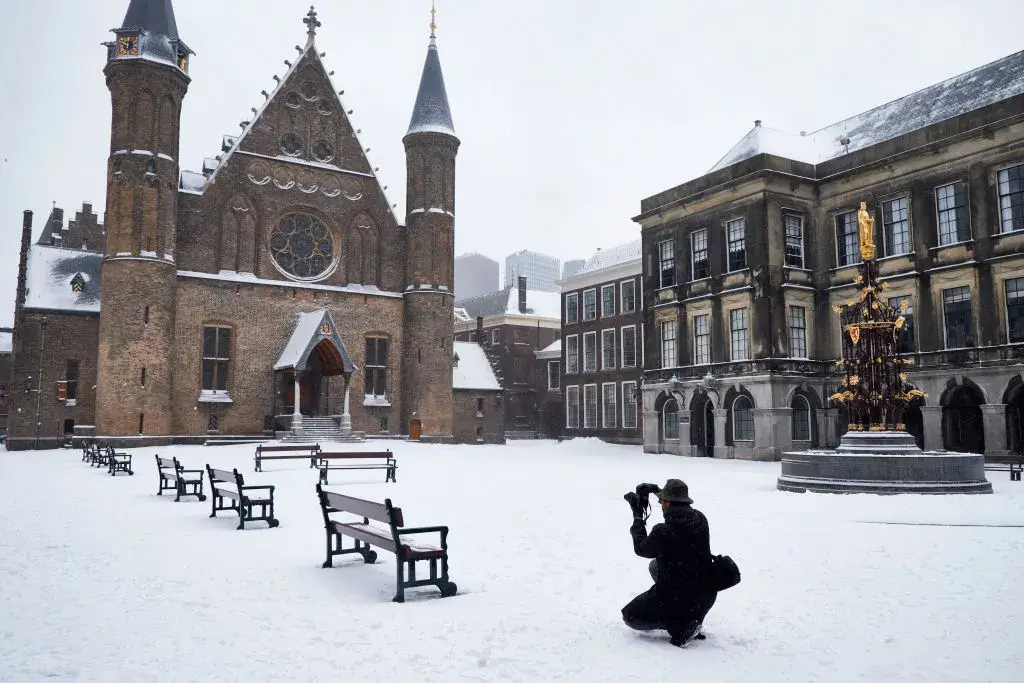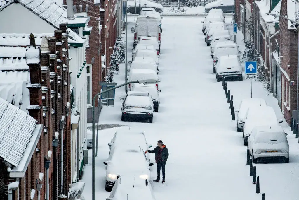 Нидерландия осъмна с бяла покривка в неделя, след като страната бе връхлетяна от първата голяма снежна буря от 10 години насам.