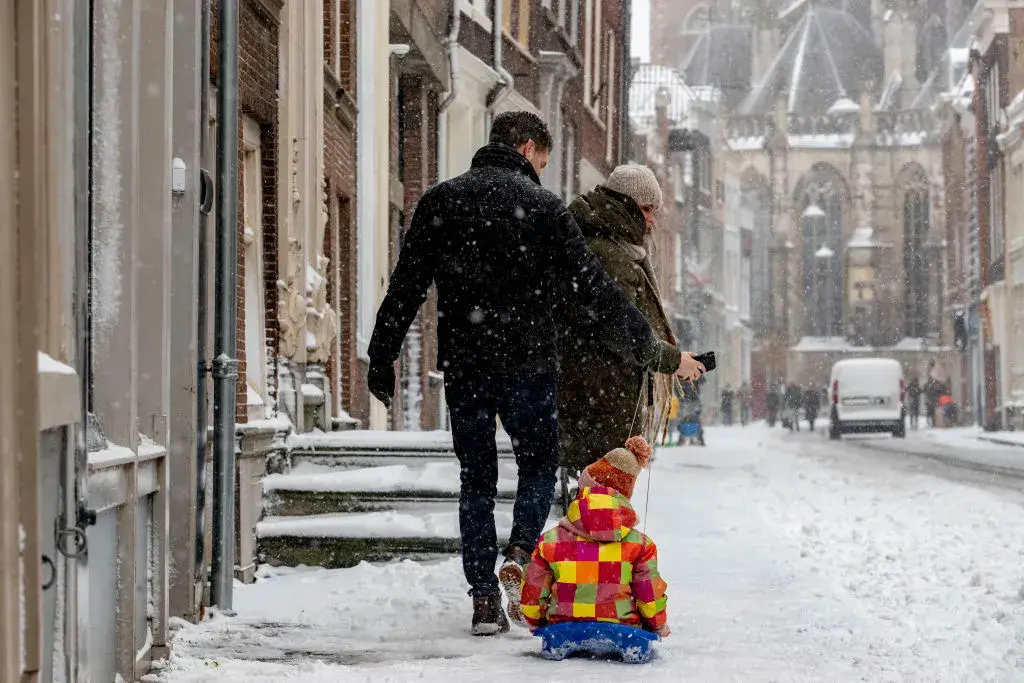 В Амстердам снеговалежът накара някои граждани да извадят ските, кънките и шейните си, за да покарат из улиците на столицата. Ограниченията заради коронавируса не им позволяват да се доберат до водещите европейски ски курорти.