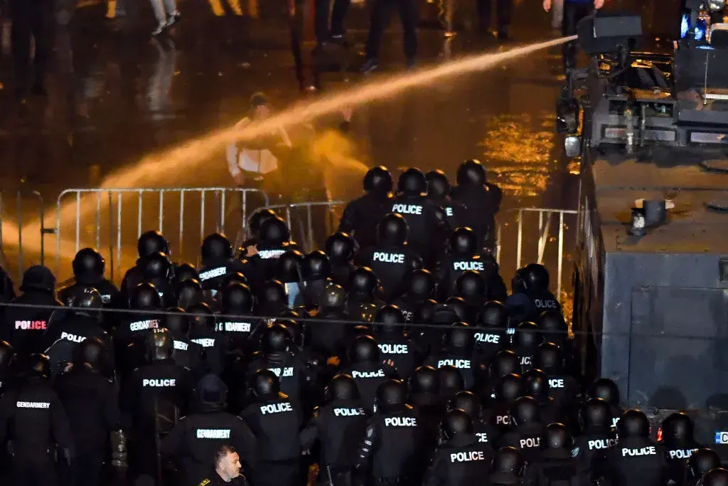 Заради размириците полицията прибегна до това да използва водно оръдие, за да овладее обществения ред.