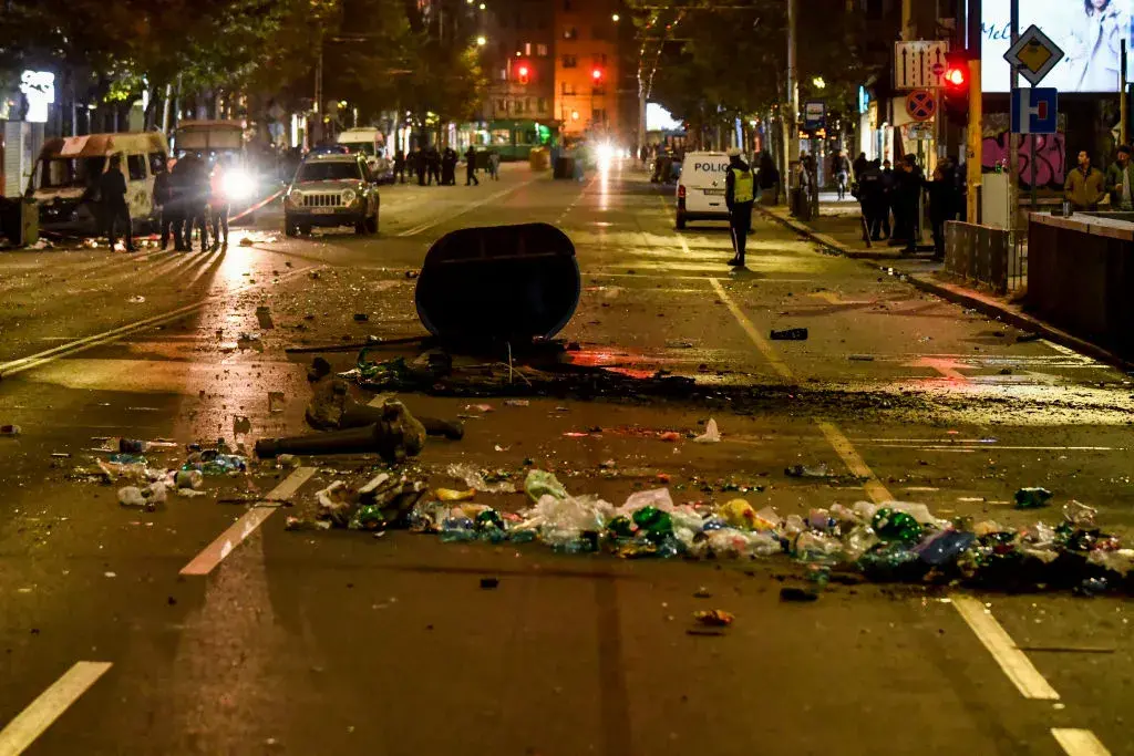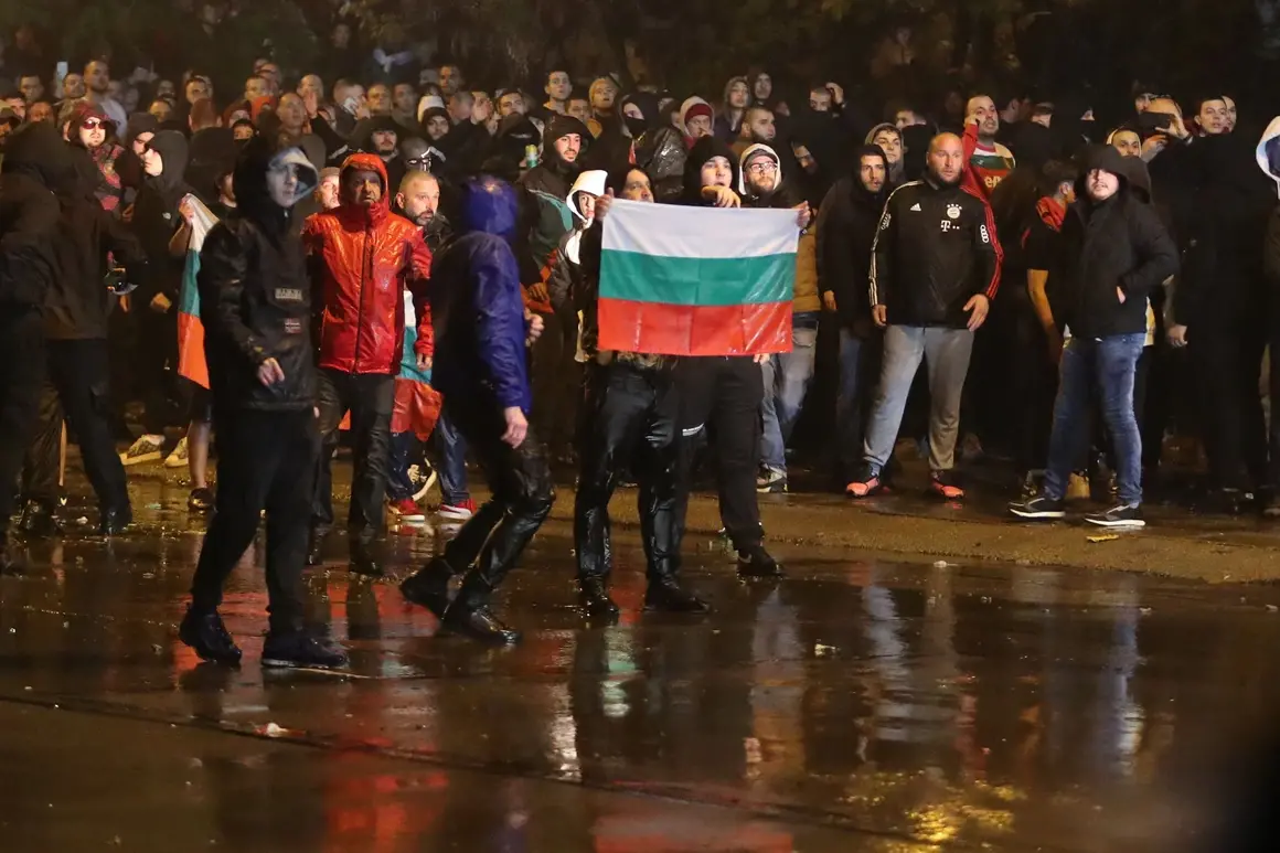 Напрежението на протеста избухна около 18:00 часа в четвъртък, след като демонстранти започнаха да хвърлят камъни и фойеверки срещу полицаите, охраняващи зоната около стадиона.
