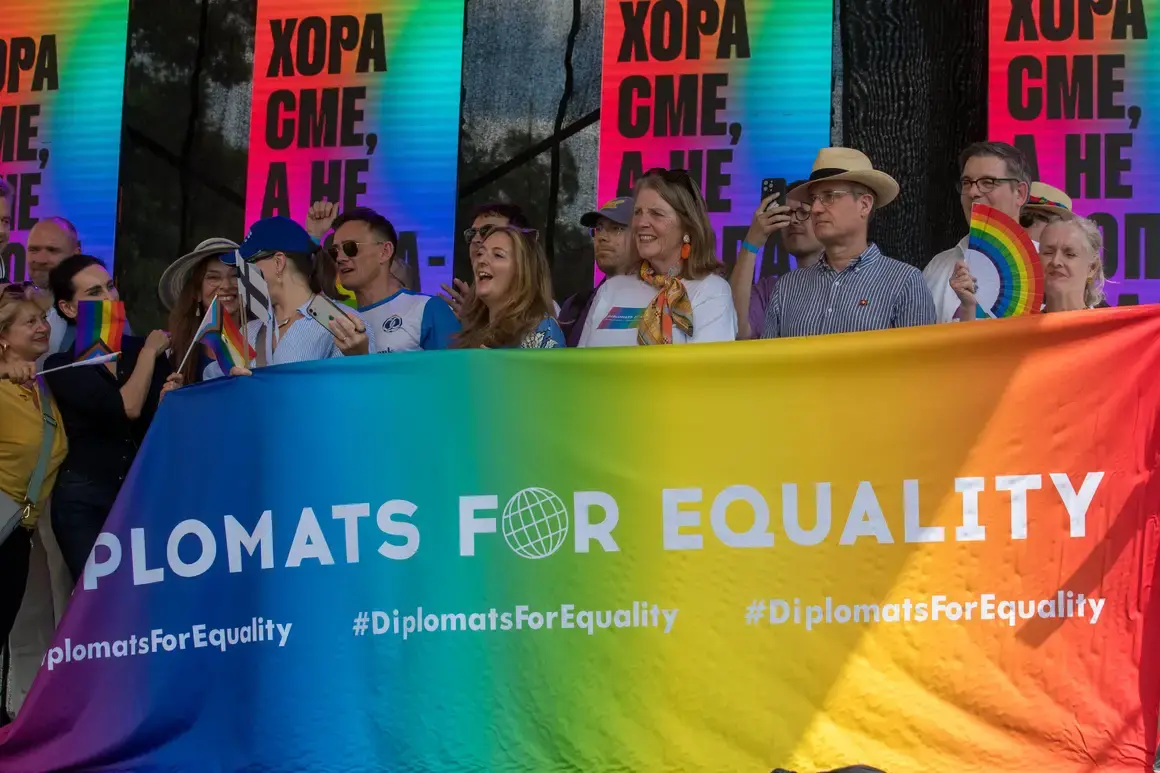 Посолствата на Великобритания, Австралия и Канада подкрепят София прайд през 2025 г. В шествието се включиха и посланиците на Ирландия и Нидерландия в България.
