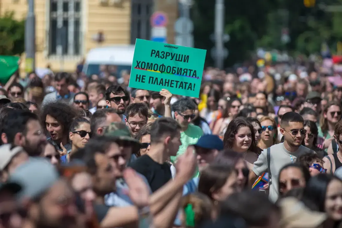 Шествието за равни права на LGBT общността в България се събра в центъра на София за 18-а година под надслова "Хора сме, а не пропаганда".