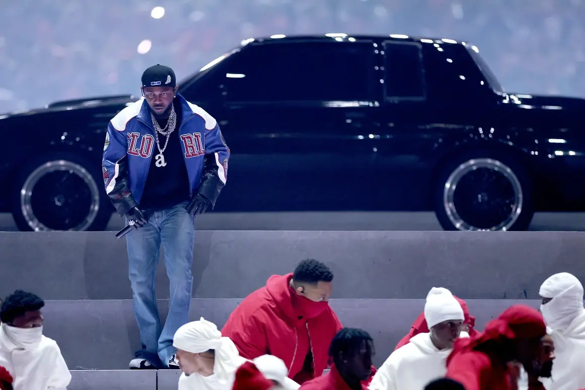 Шоуто му беше очаквано с нетърпение, колкото спортният сблъсък на терена- калифорнийската икона на рапа Кендрик Ламар съчета хип-хоп културата с цветовете на Америка за изпълнението си на Супербоул.
