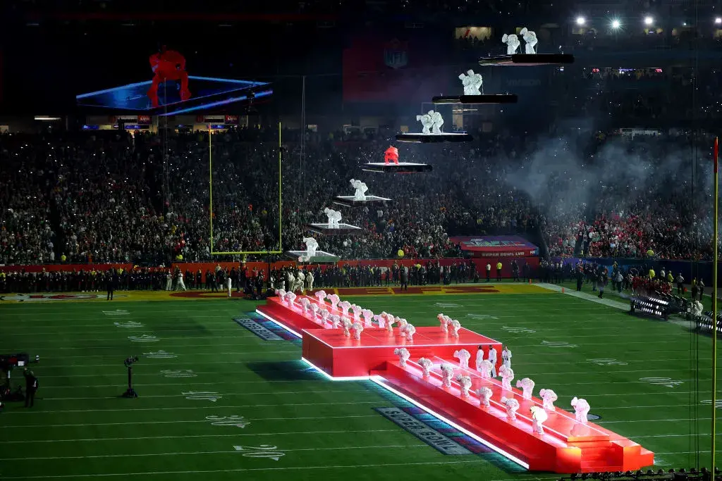 Сцената на Риана и танцьорите ѝ на полувремето.
