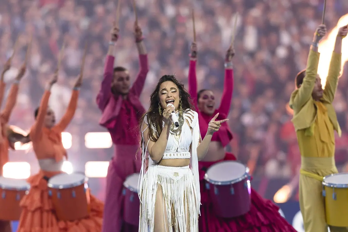 Докато спорът между полицаи и фенове се разгаряше извън "Стад дьо Франс", Камила Кабейо подгряваше публиката вътре.