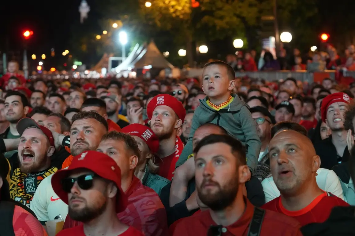 Феновете на "Ливърпул" наблюдават мача на голям екран в Париж с последна надежда за победа.