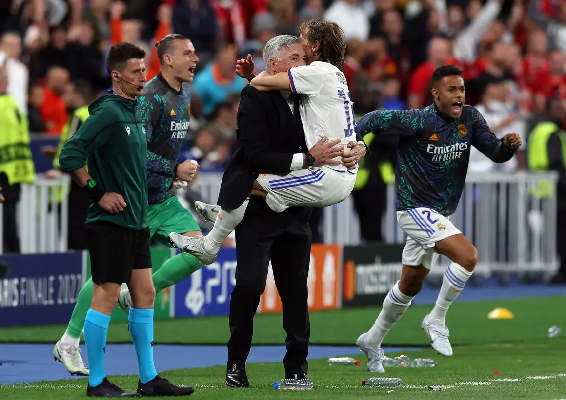 Лука Модрич прегръща треньора на "Реал Мадрид" Карло Анчелоти след победата.