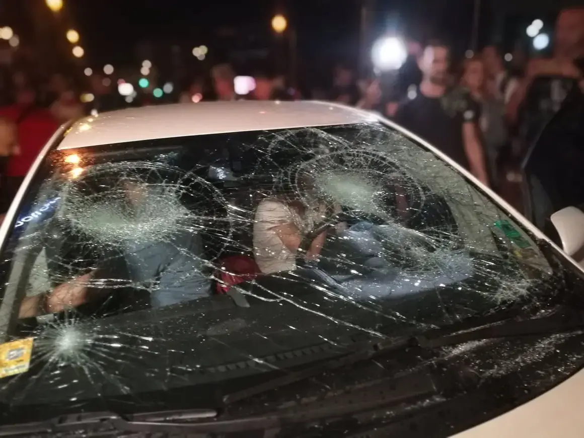 Именно поради това действие на шофьора протестиращите са започнали да удрят автомобила и да нанасят щети. Жената е излезе и предприе спорове с демонстрантите.