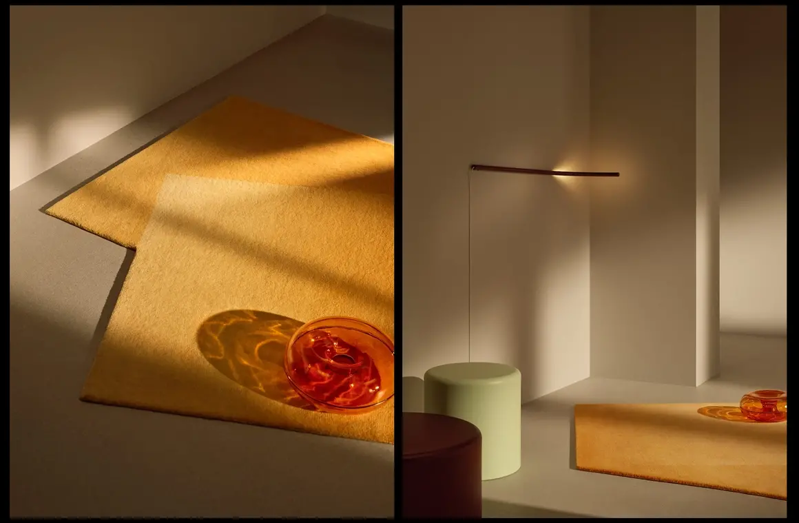 VARMBLIXT се придържа към топлите тонове, а в самата колекция намират място и два килима, вдъхновени от лъчите на залеза. Те са изработени от 100% ръчен вълнен тъфтинг.