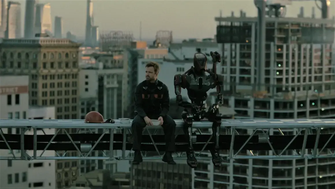 Прилича на реплика на прочутите снимки от строежа на Empire State Building. В сериала има нов герой, (Aаron Paul, Breaking Bad) а роботът до него опъва оптични кабели.