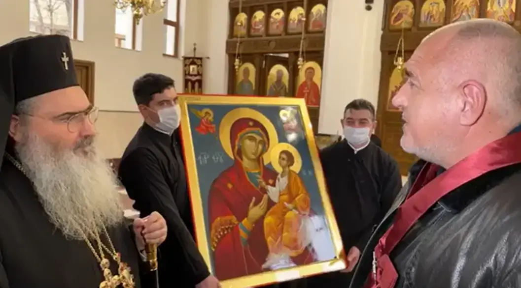 Вътре обаче владиката буквално се разплаква, докато изрежда благодарностите си към Борисов, на когото присъжда орден и икона: