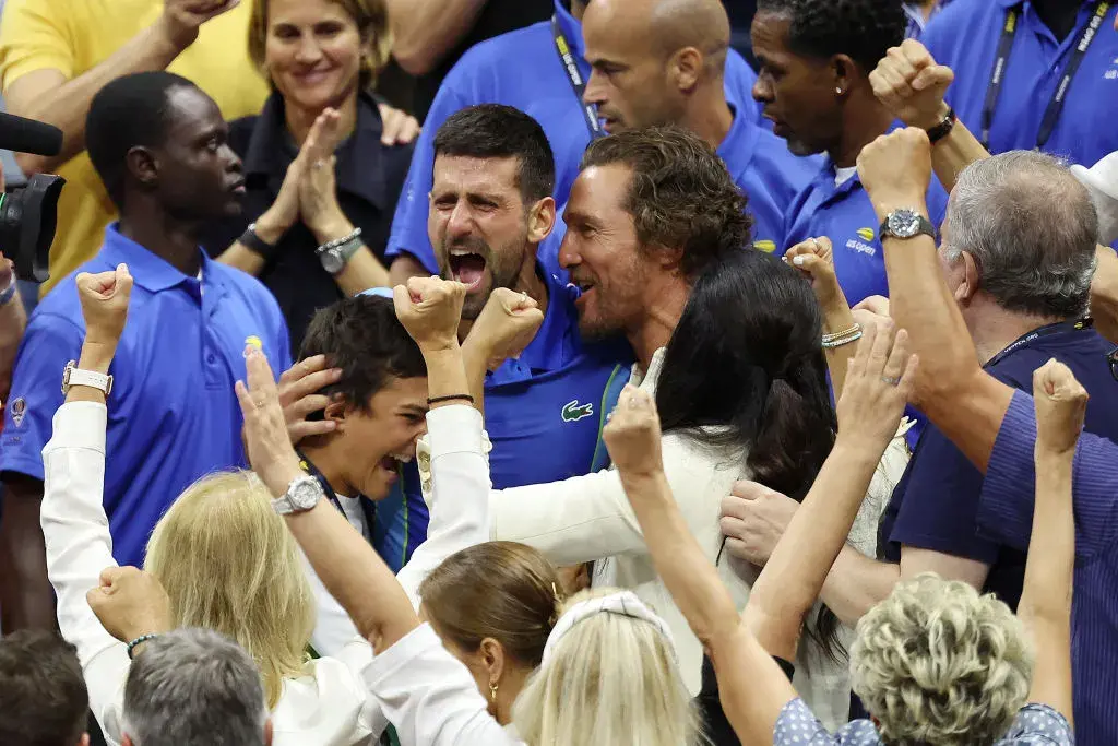 От Матю Макконъхи до Ема Робъртс - актьори, музиканти и други знаменитости станаха свидетели на победата на сърбина, който изравни 50-годишен абсолютен рекорд с новия си трофей от Големия шлем.